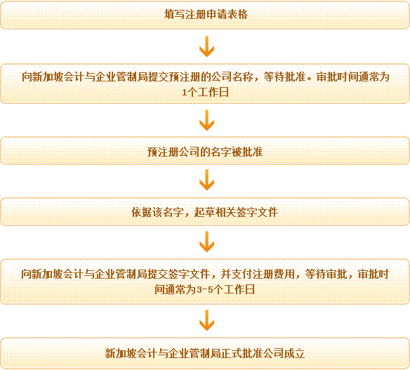 新加坡會計與企業管制局審核預注冊公司的申請的法定時間為14個工作日,但通常3至5個工作日就可以批準。