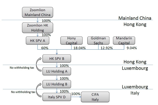 1. HK中有3個投資方進入,Zoomlion HK Holding和 HK SPV B的存在確保了不管投資方如何變動,香港往上到中國和香港向下到盧瑟堡的結構不會受影響。