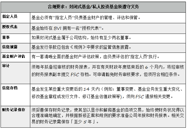 目前來說,BVI的封閉式基金幾乎等同于“私人投資基金”,因此,這些封閉式基金在未來須持續遵守下列義務: