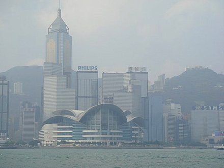 香港會(huì)展中心 煙雨蒙蒙景色