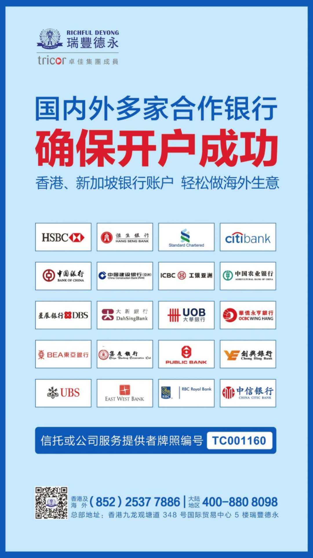 瑞豐德永(Richful Deyong)2008年始創于香港,系卓佳(Tricor)集團成員,是亞洲具有領先地位的專業服務機構,在全球21個國家/地區47個城市設有辦事處,擁有2500多名員工,服務超過30000多客戶,1300間香港聯交所上市公司,500間新加坡和馬來西亞上市公司,名列財富雜志500強企業超40%及眾多跨國知名公司。