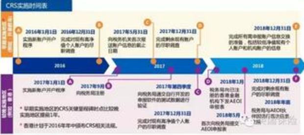 2017年1月1日,完成對(duì)新客戶開戶流程的改造,對(duì)于2017年1月1日以后的新開戶客戶,可以通過盡職調(diào)查程序識(shí)別出其中的非居民賬戶。2017年12月31日前,完成對(duì)高凈值(在2016年12月31日金融賬戶加總余額大于100萬(wàn)美金)存量個(gè)人客戶的盡職調(diào)查程序,識(shí)別其中的非居民賬戶。2018年6月30日前(預(yù)計(jì)),完成向國(guó)稅總局的首次信息報(bào)送,并在以后年度每年定期向國(guó)稅總局進(jìn)行信息報(bào)送。2018年9月30日前,中國(guó)將與其他參與 CRS 的轄區(qū)完成首次轄區(qū)間的信息交換,以后年度也將每年定期進(jìn)行轄區(qū)間的信息交換。2018年12月31日前,完成對(duì)其余所有存量客戶的盡職調(diào)查程序,識(shí)別其中的非居民賬戶。