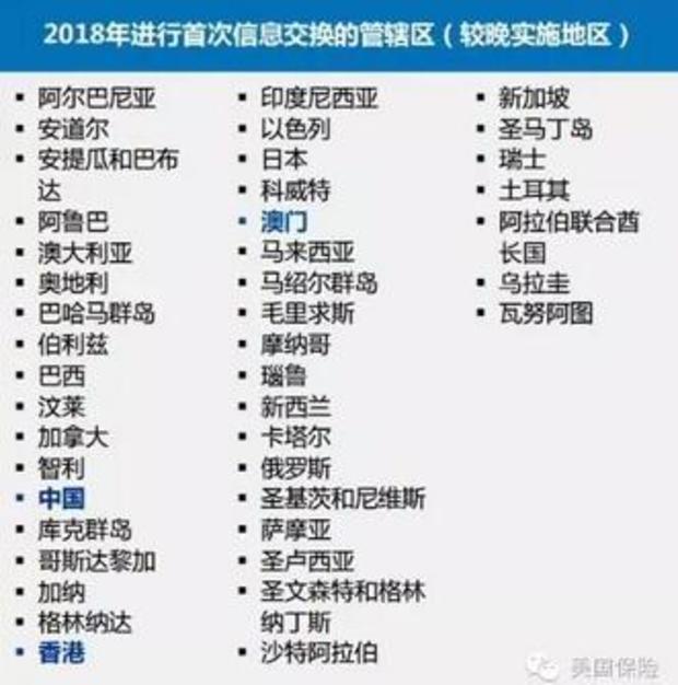 注:美國(guó)沒有簽署《通用報(bào)告準(zhǔn)則》進(jìn)行信息交換,因?yàn)槊绹?guó)已經(jīng)根據(jù)《海外賬戶納稅法案》(FATCA) 實(shí)施了自己的政府間財(cái)務(wù)信息收集體制(而且,原則上是回收的)。根據(jù)《海外賬戶納稅法案》(FATCA),從2014年開始財(cái)務(wù)信息就已經(jīng)收回美國(guó)了,因此美國(guó)目前沒打算,或者說也沒必要采納《通用報(bào)告準(zhǔn)則》(CRS)。