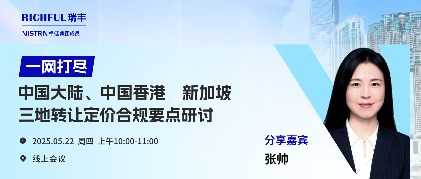 5.22直播預(yù)告 | 中國大陸、中國香港、新加坡三地轉(zhuǎn)讓定價合規(guī)要點(diǎn)研討
