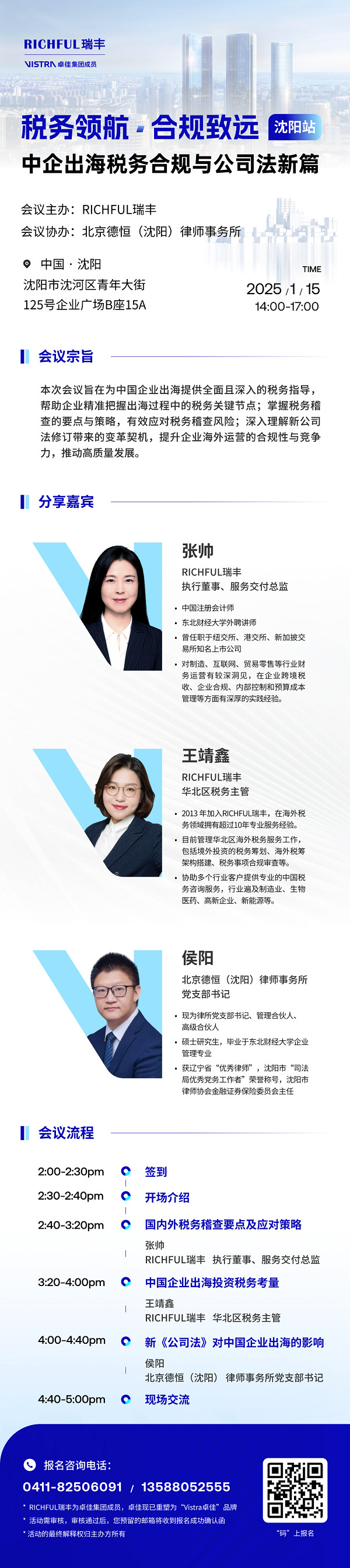 活動邀請 | 中企出海稅務合規與公司法新篇(沈陽站)
